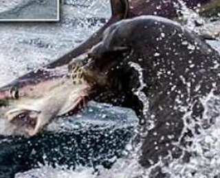 Голодный морской лев съел акулу (Видео)