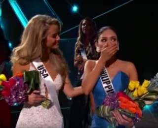 Колумбийке пришлось отдать корону «Мисс Вселенной» филиппинке из-за ошибки ведущего (Видео)