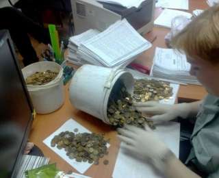 Житель Кургана принёс приставам два ведра мелочи, чтобы они не заметили недостачу