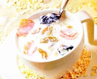 Полезный завтрак — Кефир с сухофруктами и овсяными хлопьями
