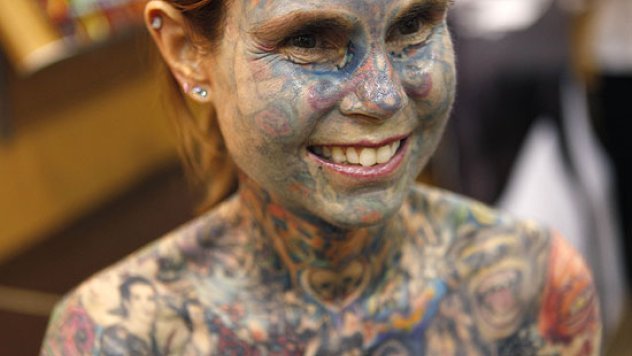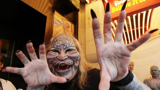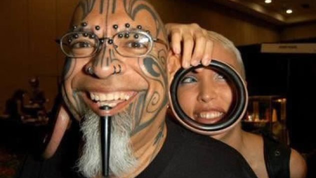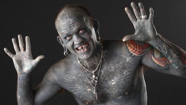 Первый пирсинг или татуировка являются обрядом посвящения для многих молодых людей. Ощущение бунтарства – это то, что мы все хотим почувствовать хотя бы раз в свои молодые годы. Тем не менее, некоторые люди, увидев иголку или синяк на теле, понимают, что призванием всей их жизни является украшение всей поверхности своего тела, так чтобы не осталось ни одного незакрашенного места. Люди, о которых мы расскажем в этом списке, посвятили свои жизни тому, чтобы отличаться от всех остальных …самыми экстремальными способами.