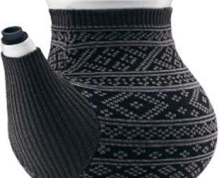 Этот чайный чайник с уютной трикотажной муфтой не только сохраняет чай горячим дольше, но и излучает тепло и уют. Муфта из шерсти предлагается в различных цветах и с разными узорами. Чайник сам по себе имеет упрощенные формы, сделан из белого фарфора и имеет большую ручку из нержавеющей стали. Чайник вмещает 1,5 литра жидкости, которую можно разлить, не беспокоясь за то, что она прольется.