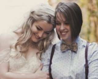 Справа это не подружка невесты...это "жених". Вот чем хороша Европа для тех кто против или просто не устраивает натуральный мир. Девушки которые считают себя лесбиянками просто получили психологическую травму в отношениях с мужчиной. Ну так один козёл попался надо же пробовать с другими, а не искать такую же и забавляться резиновыми игрушками.