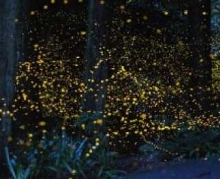 Это светлячки. Фотографии сделаны в Японии во время сезона дождей (с июня по июль), когда светлячки спариваются после грозы.