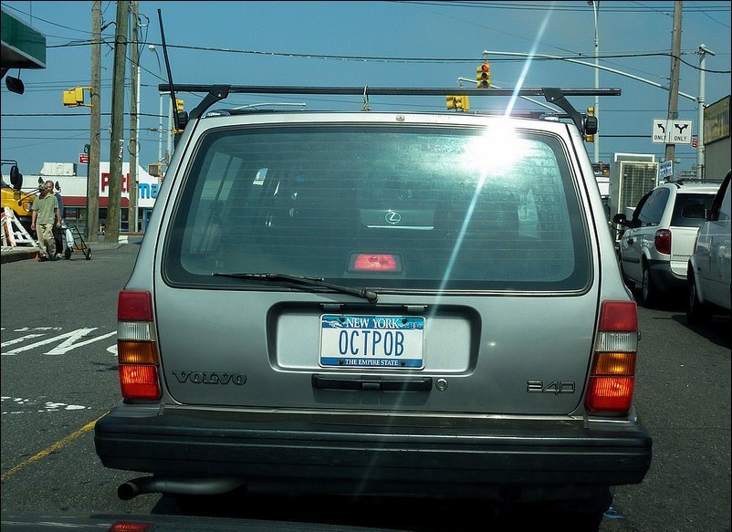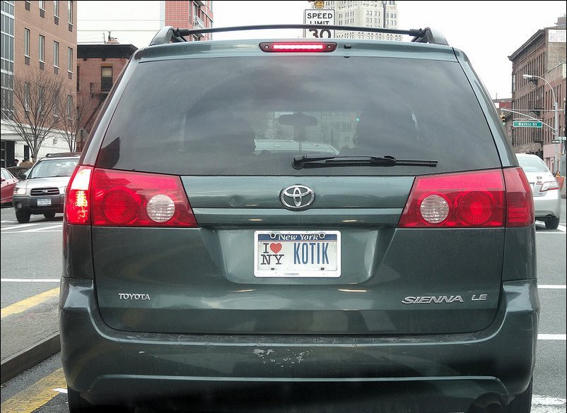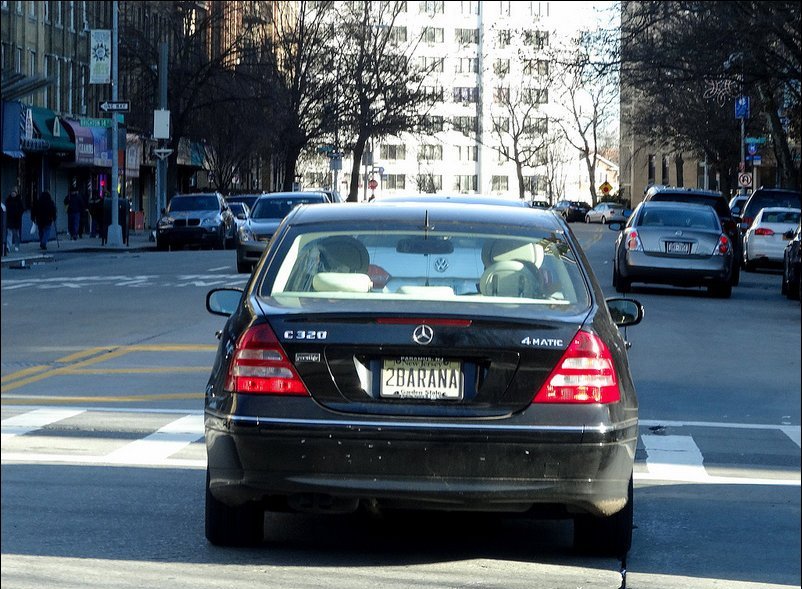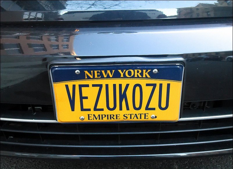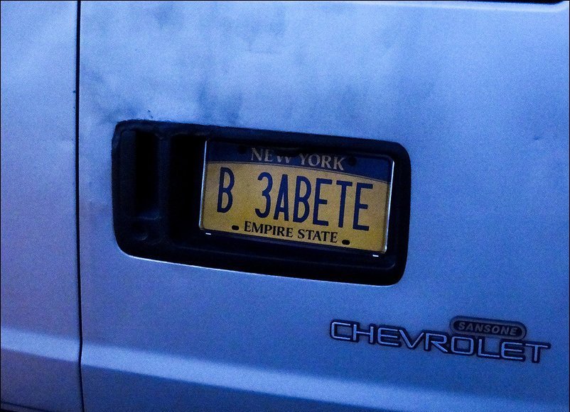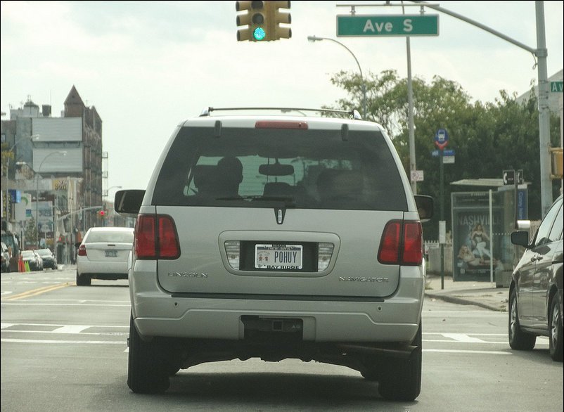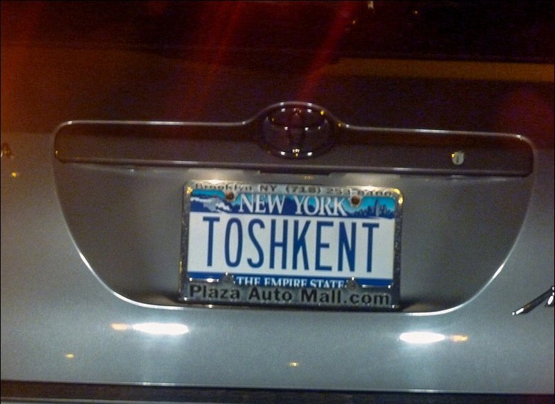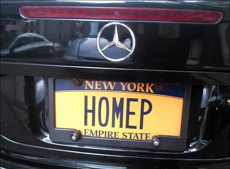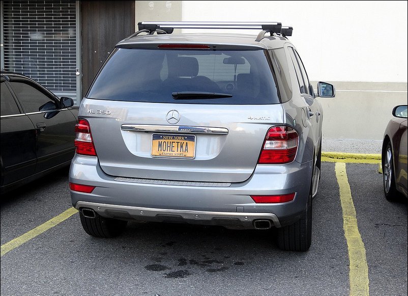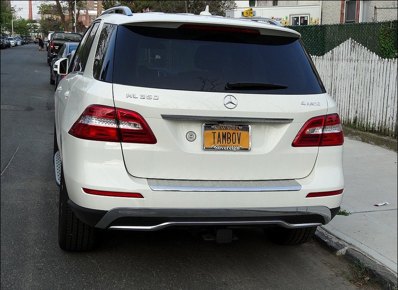 В Нью-Йорке на заказ можно купить любой автомобильный номер, для этого нужно лишь заплатить 60-90 долларов и ежегодно оплачивать по 30 долларов. Находчивые русскоговорящие американцы, естественно, не могли этим не воспользоваться, поэтому на дорогах США можно увидеть автомобили вот с такими номерами: