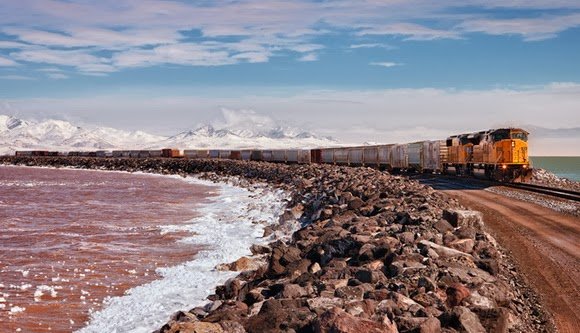 Дамба, которая тянется через Большое Солёное озеро в штате Юта, была построена в 1950-ых годах строительной компанией под названием «Morrison-Knudsen». Она была возведена по заказу Южной тихоокеанской транспортной компании (Southern Pacific Railroad) в качестве замены ранее построенной деревянной эстакады. На данный момент дамба находится во владении и эксплуатации железнодорожной компании Юнион Пасифик (Union Pacific).![]()