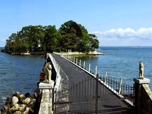 Закрытая насыпная дорога, расположенная на острове Каритас (Caritas Island) в штате Коннектикут, ведёт к 1,6-гектарному комплексу, который включает в себя отреставрированное английское поместье площадью 1300 квадратных метров, причал, плавательный бассейн, пляж, пруд с декоративными карпами, трёхкомнатный домик для гостей и бывший домик для карет и экипажей. На данный момент остров Каритас продаётся за 12,8 миллионов долларов.