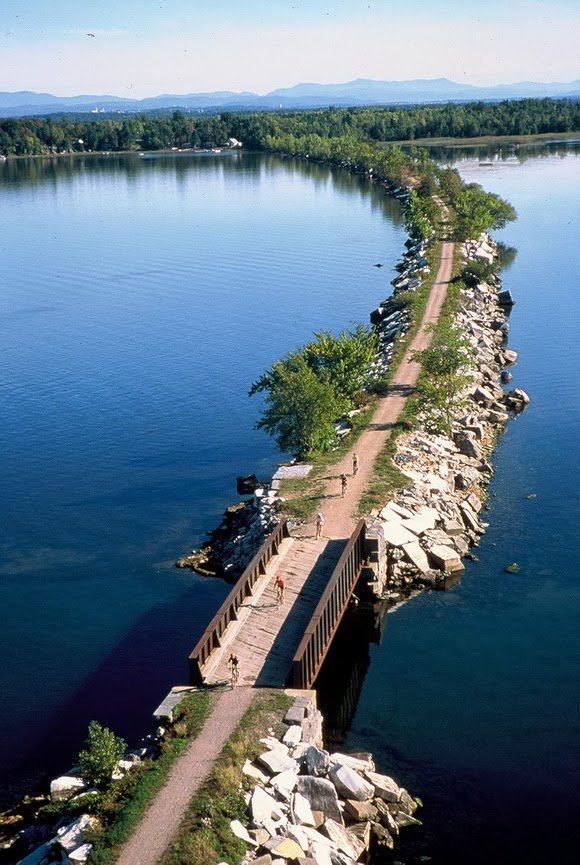 Насыпная дорога пересекается с парком Колчестеровского аэропорта и соединяет 12-километровую велосипедную трассу с островом Лайн (Island Line) в городе Саут-Хиро (South Hero). Это прекрасная 22,5-килметровая дорога, которая пролегает вдоль озера Шамплейн. Обочины насыпной дороги выложены большими валунами и с неё открывается просто невероятный вид.