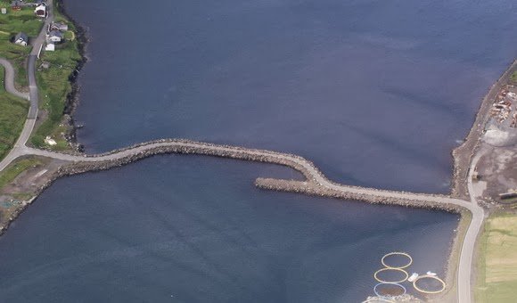 Насыпная дорога расположена между островом Борой (Borðoy), находящимся справа и островом Куной (Kunoy), находящимся слева, на Фарерских островах. На острове Куной располагается деревня под названием Харалдссунд (Haraldssund).![]()