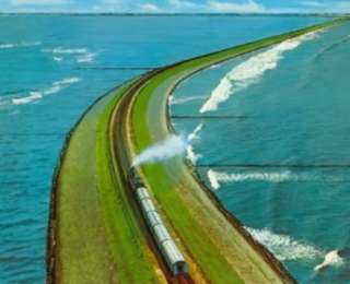 1. Дамба на Большом Солёном Озере (Great Salt Lake Causeway), США![]()