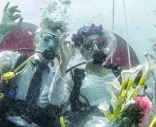Крис и Джанет, которые провели вместе 20 лет, наконец-то решились узаконить свои отношения. Так как оба молодожена фанатеют от подводного плавания, они решили сыграть свадьбу в аквалангах. Церемония проходила на глубине 12 метров возле одного из Мальдивских островов.