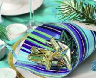 В год Лошади для сервировки стола выбирайте синюю или сине-белую гамму. Делайте ставку на салфетки и маленькие элементы декора. В центре стола поставьте вазу с плавающими свечами. Ножки у бокалов перевяжите синей или серебристой лентой.
