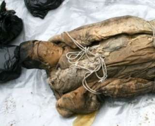 На стройке в Тайчжоу (это в восточной китайской провинции Чианьсу) археологи обнаружили гроб с женщиной, которая была похоронена примерно 700 лет назад. Останки её хорошо сохранились до наших дней. При жизни женщина была ростом не выше 1.5 метра. Само тело было завернуто в погребальные одежды – льняные лоскуты, хорошо пропитанные воском, и стёганное одело.