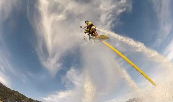 Джетоватор в равной мере можно назвать и плавательным, и летательным аппаратом. Это летающее чудо техники уже стало хитом летнего сезона. Реактивный подъемник, или водолет, поднимается в воздух, отбрасывая вниз водяную струю. Летать этому аппарату позволяет сопло, в которое закачивается вода под давлением. По сути, джетоватор – это целых четыре устройства: гидроцикл, к которому присоединяется специальная насадка из алюминиевых труб, гибкий шланг и сам водолет. Это очень необычный и абсолютно безопасный аттракцион, который позволяет человеку почувствовать себя дельфином и парить над водой.