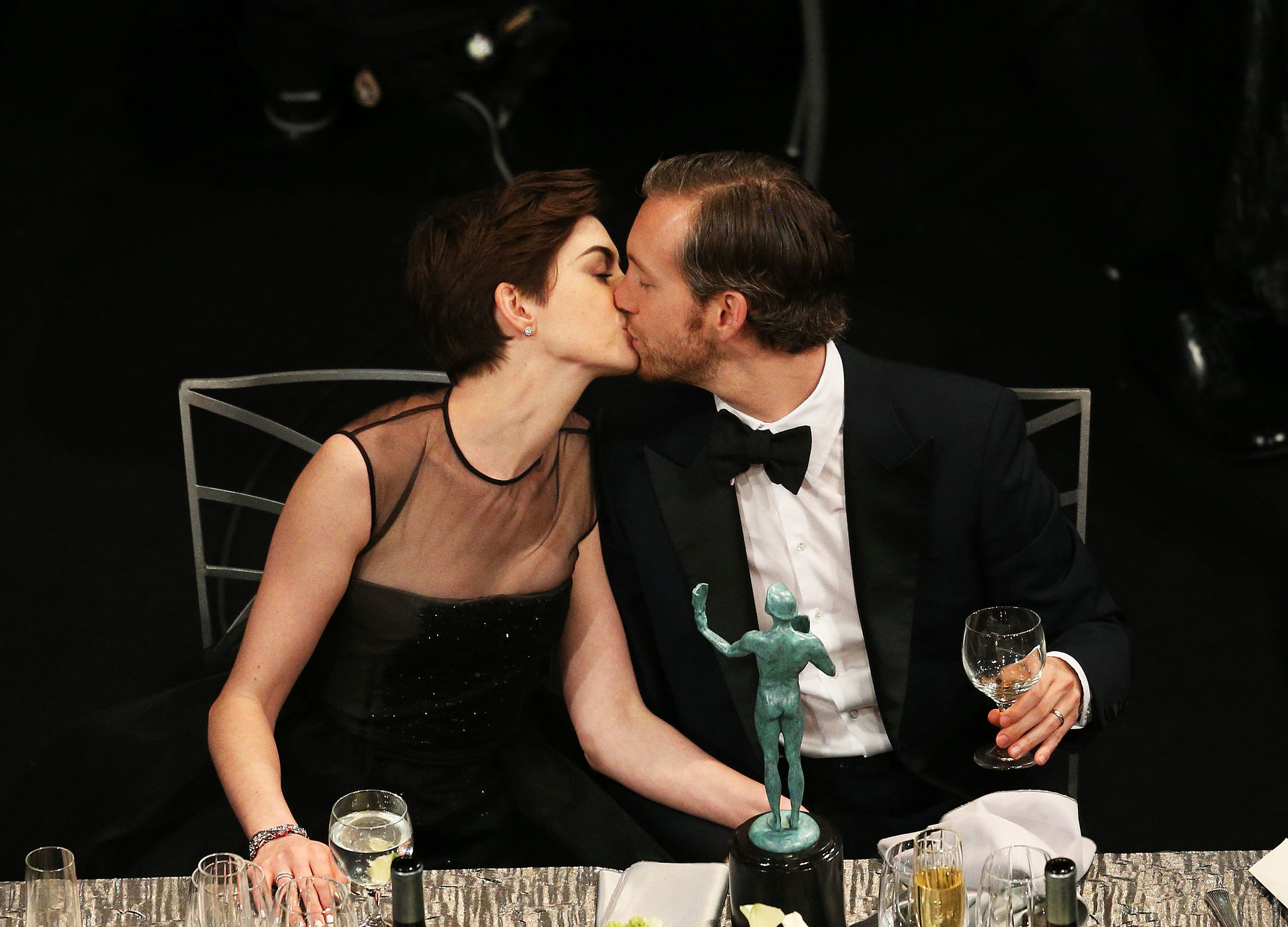 Энн Хэтуэй засняли целующейся с мужем Адамом Шульманом на пляже во время их гавайских каникул. Трогательности этому кадру добавляет и малыш на руках у Энн!