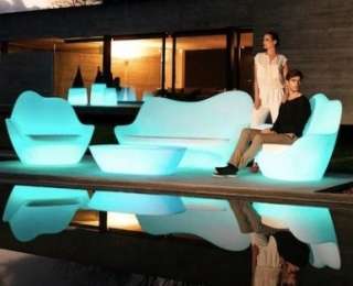 Известный мебельный бренд Vondom выпустили футуристическую линию мебели, которую можно использовать под открытым небом. Светящаяся коллекция под названием Sabinas была разработана в сотрудничестве с дизайнером Хавьером Марискалем (Javier Mariscal).