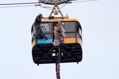 Организаторы аттракциона также создали для пар праздничное оформление: у каждого, кто прыгнул было надето мягкое нижнее белье и мягкие ремни безопасности.