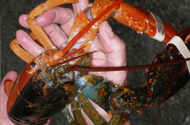 Панцирь американских омаров представляет собой сочетание жёлтого, красного и синего пигментов, и одна половина этого животного выглядела рыжей, потому что в ней отсутствовал синий пигмент. Вторая половина осталась незатронутой, потому что каждая половина американского омара развивается отдельно. Наполовину окрашенные омары — это действительно большая редкость, и шансы встретить такое существо равны примерно 1 к 50 миллионам.