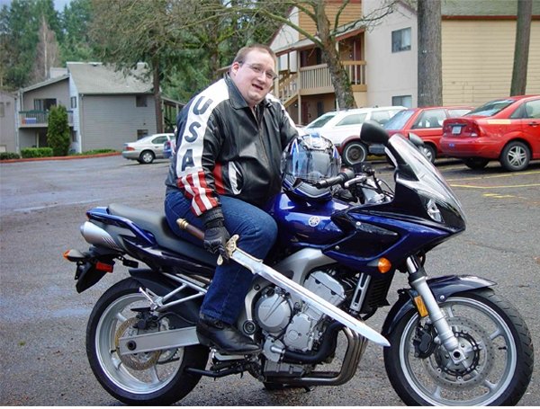 Полный вперёд и с ветерком, вдвоём с этим размахивающим мечом мотоциклистом.