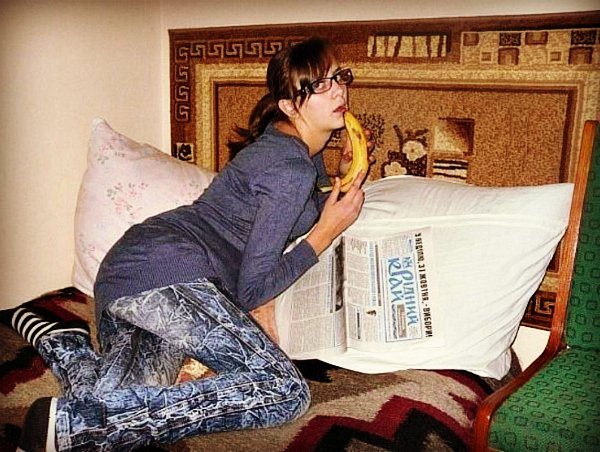 Банан и газета - неоспоримые и вечные инструменты обольщения.