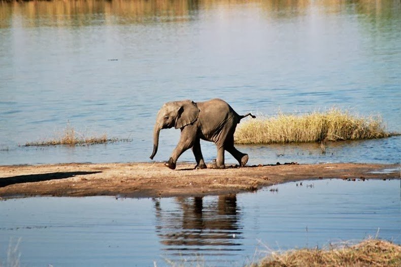Слонёнок в зоне Серондела (Serondela), на берегу реки Чобе, в Национальном парке Чобе.