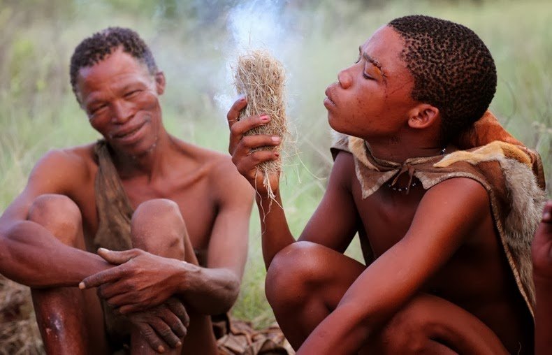 Бушмены населяли Калахари в течение тысяч лет, и их народ восходит к периоду каменного века. Эти бушмены до сих пор живут здесь, и бродят по территориям как кочевые охотники.