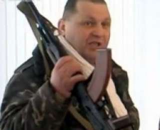 Представитель Правого сектора, известный как "Сашко Бiлий", пришел на заседание Ровенского облсовета с автоматом Калашникова.