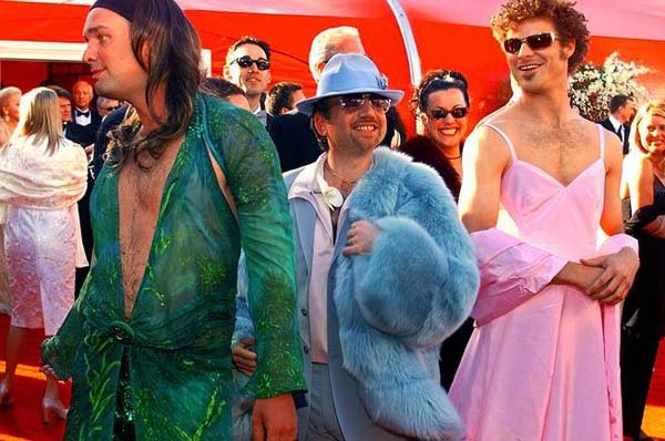 «Мы думали над этим примерно за неделю до церемонии», - объяснили они. «А когда наступил тот день, мы были просто очень нервными. Мы думали: “Не, не, мы не может это сделать”. Понимаете? И потом мы такие, “Не, мы не напялим эти платья”. У нас были смокинги в качестве запасного варианта, потому что мы знали, что мы передумаем. И мы передумали. А потом, мы такие “Давай не будем, давай не будем”. Но потом подумали “Давай-ка мы навернём ЛСД и посмотрим, что будет”. Ну, мы сделали это, и через где-то час, мы подумали “Всё же надо использовать платья!”»