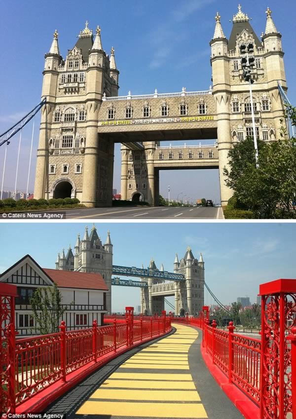 Для неопытного глаза, гости Сучжоу на востоке Китая вполне могут предположить, что они по ошибке оказались в 9 000 километров от отеля. Город в провинции Цзянсу (Jiangsu) теперь может похвастаться своей собственной почти идентичной копией самого легендарного моста в Лондоне. Единственное отличие между двумя строениями состоит в том, что в китайской реплике отсутствует подъемный механизм, позволяющий лодкам проплывать под ним. Кроме того, в китайской модели в два раза больше башен, чем в оригинальной версии, пересекающей реку Темзу.