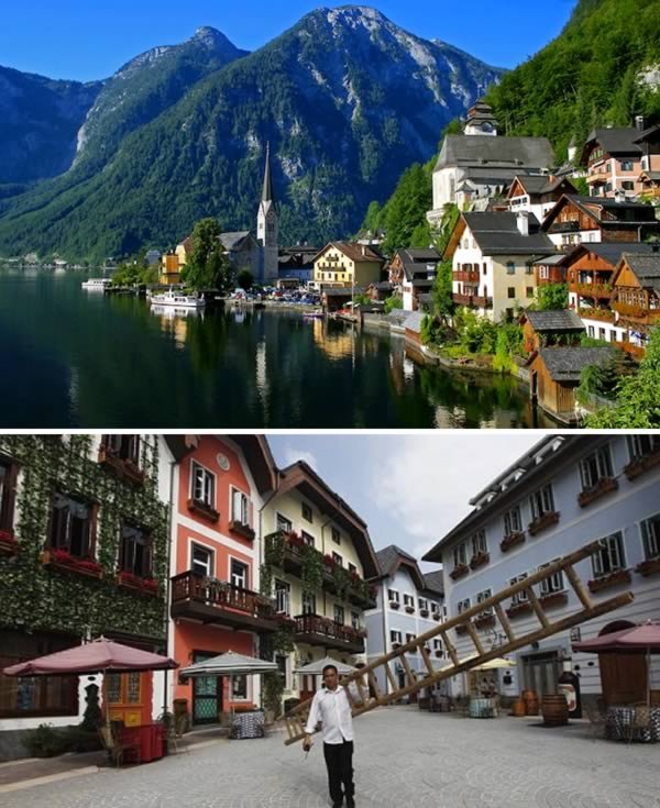 Каждая деталь оригинальной деревни Гальштат, жемчужины всемирного наследия, находящейся под защитой ЮНЕСКО в Австрии, была скопирована в реплике, расположенной в часе езды за пределы Хойчжоу (Huizhou) в провинции Гуандун. Китайская корпорация «Minmetals» объявила о плане воссоздания уединенной деревушки за сумму в 940 миллионов в июне 2011 года и всего через год место было открыто для посетителей.