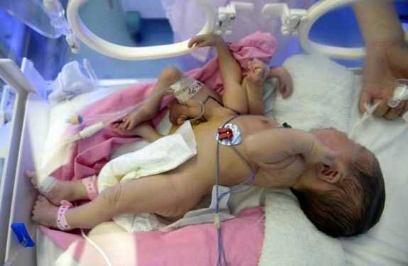 По словам главного хирурга в детском медицинском центре Гуанчжоу, младенцы должны были быть близнецами, но один оказался недостаточно развит и начал деформироваться. Сиамские близнецы весили чуть более трех килограммов до операции, в хоте которой был удален паразитический плод весом 600 граммов.
