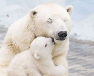 8. Полярный медвежонок прижимается к маме. (Фото: Caters News)