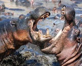 Бой 5-тонных бегемотов в Танзании.