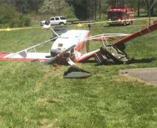 Катастрофа произошла в аэропорту Тейлорсвилля в Северной Каролине. 84-летний пилот Эдвард Сиссон не получил травм, но подстригавший газон с газонокосилкой Джон Рафти был госпитализирован в местную больницу.