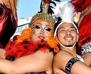 Представители ЛГБТ-сообщества в ярких костюмах принимают участие в параде «Tokyo Rainbow Pride», который проходит по улицам района Сибуя, Токио, Япония.