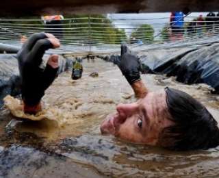 Сотни людей собрались на марафон «Забег на выживание» в Оксфордшире. В этом году 12-мильный изнурительный курс нападения включил себя электрический бассейн, где соревнующиеся должны были проползти на животе, пытаясь избежать казни на электрическом стуле в 80 000 вольт в ледяной воде.