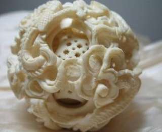 Настоящей жемчужиной среди прочих шедевров, выполненных из слоновой кости, признаны «решетчатые шарики внутри шариков» . Первым шагом в изготовлении этого чуда является превращение куска кости в идеальный шар, после чего в нем на необходимом расстоянии просверливаются несколько отверстий конической формы, чьи вершины сходятся точно в центре шара. Затем мастер с помощью линейки отмечает в каждом отверстии, сколько шариков он хочет выгравировать внутри первого. Теперь он может приступать непосредственно к вырезанию шариков, начиная с лежащего в самом сердце будущего «решетчатого шарика» . Мастеру приходится полагаться лишь на собственное чутье, годы опыта и острое лезвие своего резака, т. к. проделанные отверстия не позволяют ему видеть, что происходит внутри шара. Все последующие шарики также вырезаются изнутри. При этом ошибись мастер хоть на волосок – и вся работа пойдет насмарку.