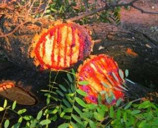 Спиленный ствол этого дерева начинает немедленно покрываться “кровавыми” подтёками, отчего дерево становится похожим на отсечённую конечность какого-то гигантского животного.