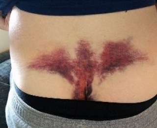 30-летний Крис Холланд бухал с друзьями на холостяцкой вечеринке, когда "случайно упал на стол" и заработал приличный синяк на пояснице. Когда он посмотрел в зеркало, увидел, что ушиб по форме напоминает ангела, что, несомненно, является благословением на будущую свадьбу.