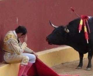 Это невероятное фото знаменует собой конец карьеры матадора Альваро Мунеро. Он упал в раскаянии в середине боя, когда он понял, что зверь не хочет с ним бороться. В будущем этот матадор стал заядлым противником боя быков.