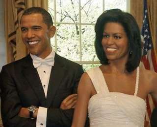 Американский президент Барак Обама и королева Великобритании Елизавета ІІ в музее мадам Тюссо в Лондоне.