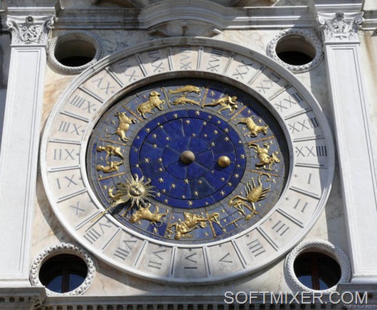 Внизу под циферблатом показывающих время часов находятся астрономические часы, с помощью которых знающие люди могут определить даже знак зодиака и фазу луны, не говоря уже о дне недели и месяце.