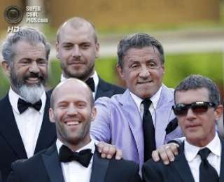 Джейсон Стэтхэм, Антонио Бандерас, Мел Гибсон, Сильвестр Сталлоне, Харрисон Форд перед показом фильма «Неудержимые 3».