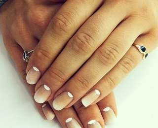 Сейчас в моде френч наоборот, то есть, выделяется не кончик ногтя, а его основание, и не контрастным оттенком лака, а, например, блестками.