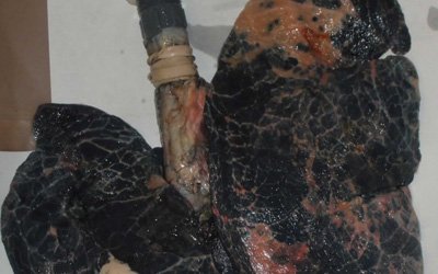 Даже не знакомому с медициной обывателю с первого взгляда становится понято, что органы дыхания, подвергавшиеся во время эксперимента воздействию сигаретного дыма, были серьезно повреждены, пишет британское издание Mail Online.