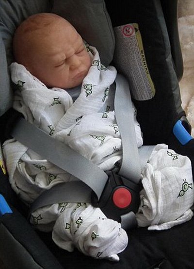 Так называемый "реборн" (кукла-копия новорожденного, сделанная из мягкого силикона) был смоделирован на основе фотографий, сделанных журналистами во время выписки Кейт Миддлтон из роддома в прошлом году.