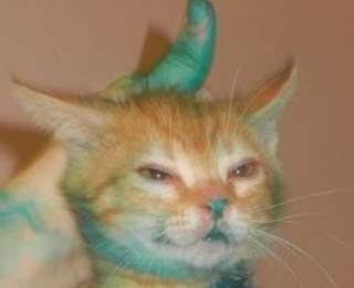 ...и по глупости поставил на край столика,столик застелен длинной почти до пола скатертью, пока я мазал дочу зеленкой этот дол* б влетел в ванную прыгнул на скатерть и перевернул все на себя.