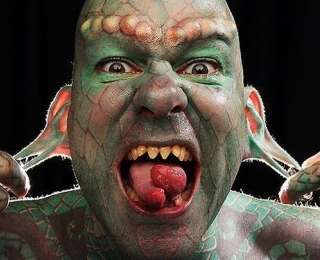 Кала Каиви, безусловно, выглядит как настоящий мутант, однако всё его лицо — искусственное. 75% тела Каиви покрыто татуировками, а ещё у него проколот язык, под кожу лица вставлены многочисленные силиконовые имплантаты и растянуты мочки ушей и ноздри. По сравнению с другими людьми из нашего списка всё это может показаться довольно заурядным, но Каиви сделал ещё один большой шаг — в верхнюю часть его черепа ввинчены металлические шипы.