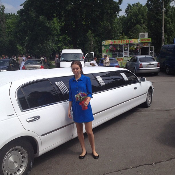 Девочка выложила в своем микроблоге фотографию, на которой она с красивым букетом в руках позирует на фоне белоснежного лимузина.