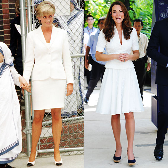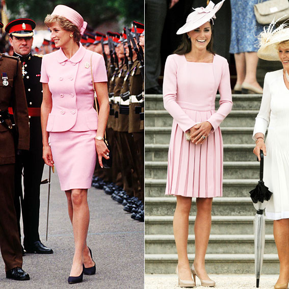 На важных для британской монархии событиях, такие как помолвка, свадьба, выписка из роддома, официальные мероприятия или первое турне их наследника наблюдается определенное сходство в выборе одежды, манер, жестов двух пар с разницей в 32 года. Кейт и Диана: случайное сходство или подражание?